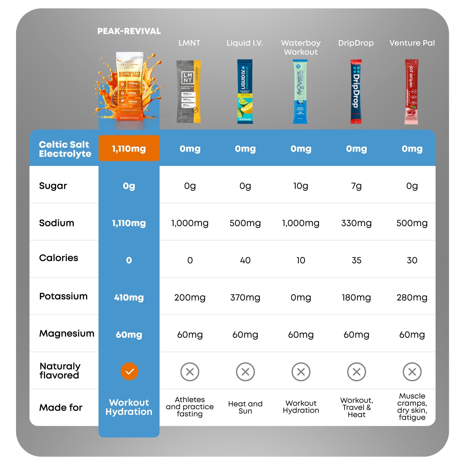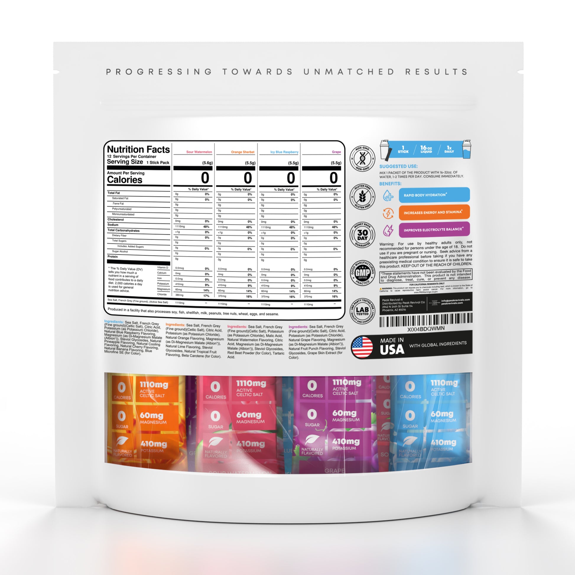 Essential Electrolyte Balance: Each packet contains 60mg of magnesium and 410mg of potassium, crucial for maintaining proper electrolyte balance, reducing cramps, and enhancing muscle function. Ideal for replenishing lost electrolytes after intense workouts or long days.