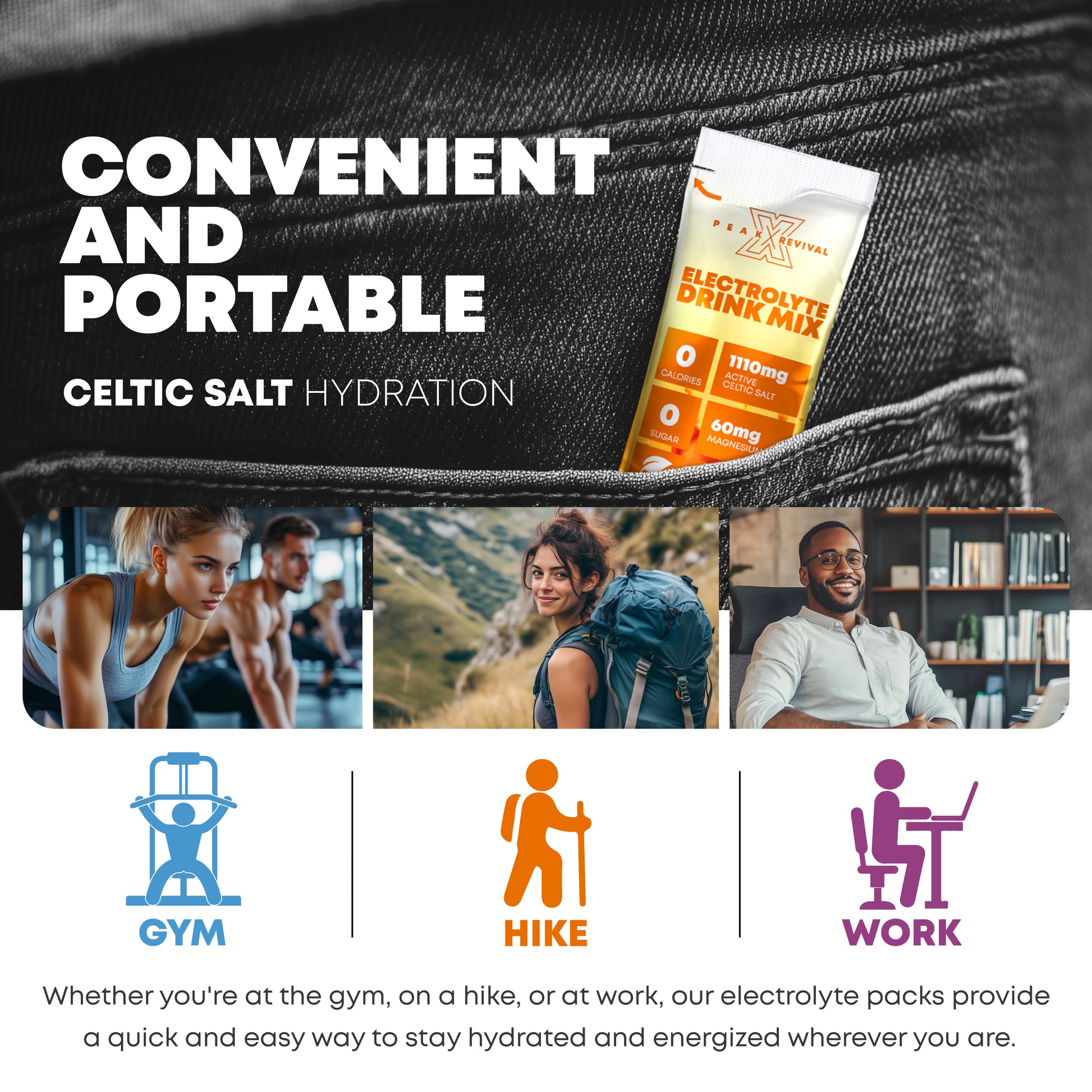 Convenient and Portable: Each pouch contains 12 individual packets, making it easy to take your hydration on the go. Whether you're at the gym, on a hike, or at work, our electrolyte packs provide a quick and easy way to stay hydrated and energized wherever you are.