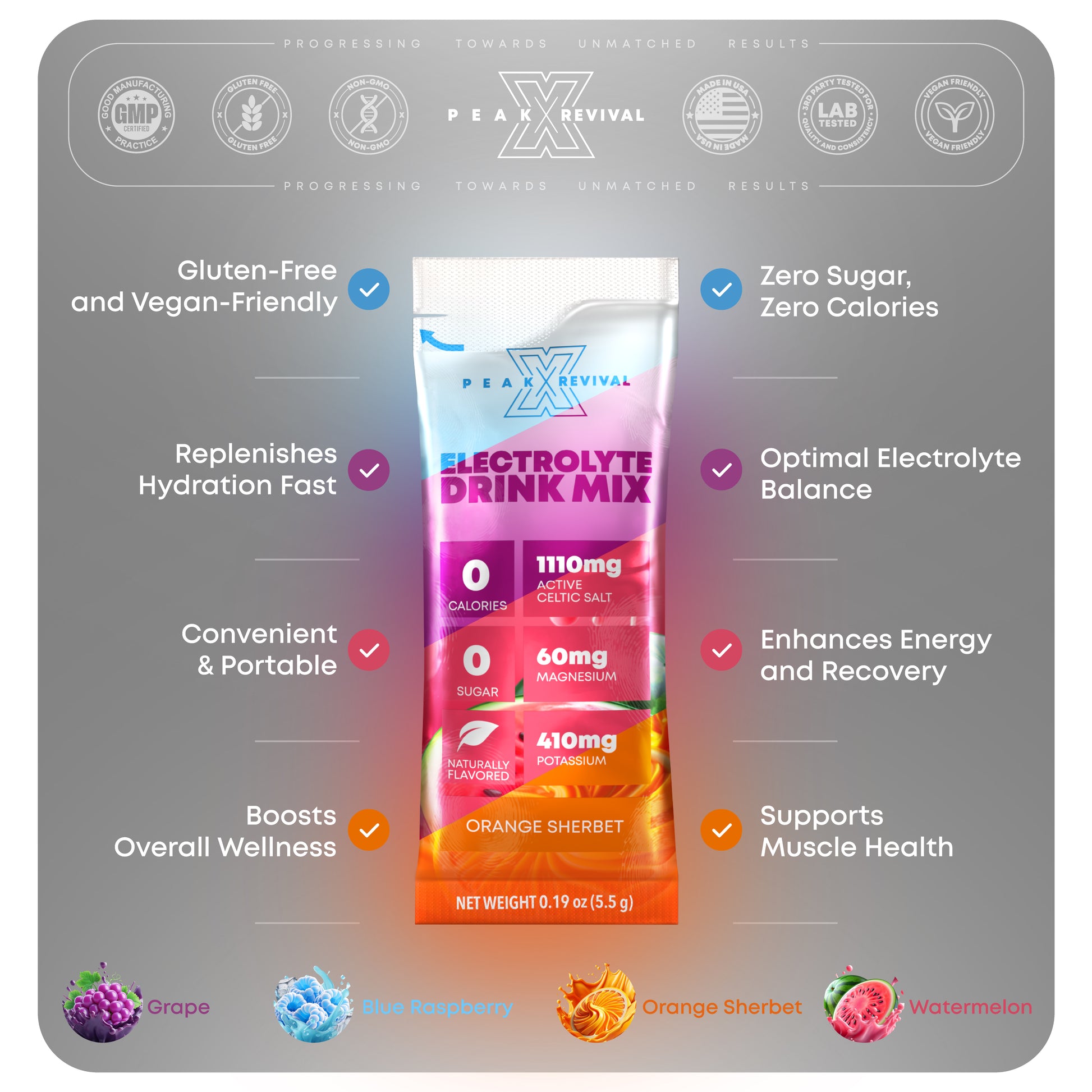 Delicious Natural Flavors: With four naturally flavored options - Icy Blue Raspberry, Orange Sherbet, Grape, and Sour Watermelon - hydration has never tasted so good. These flavors cater to a variety of taste preferences, making it easy to stay hydrated and enjoy every sip.